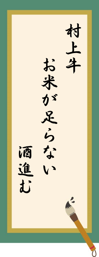 越後村上物産会では、村上市の特産品を選んでいただいたお客様にアンケートをお願いしているのですが、その中で村上の特産品を絡めた川柳を募集致しております。ここではご応募いただいた作品とその中の月間会長賞を月ごとに紹介しております。どうぞご覧ください。