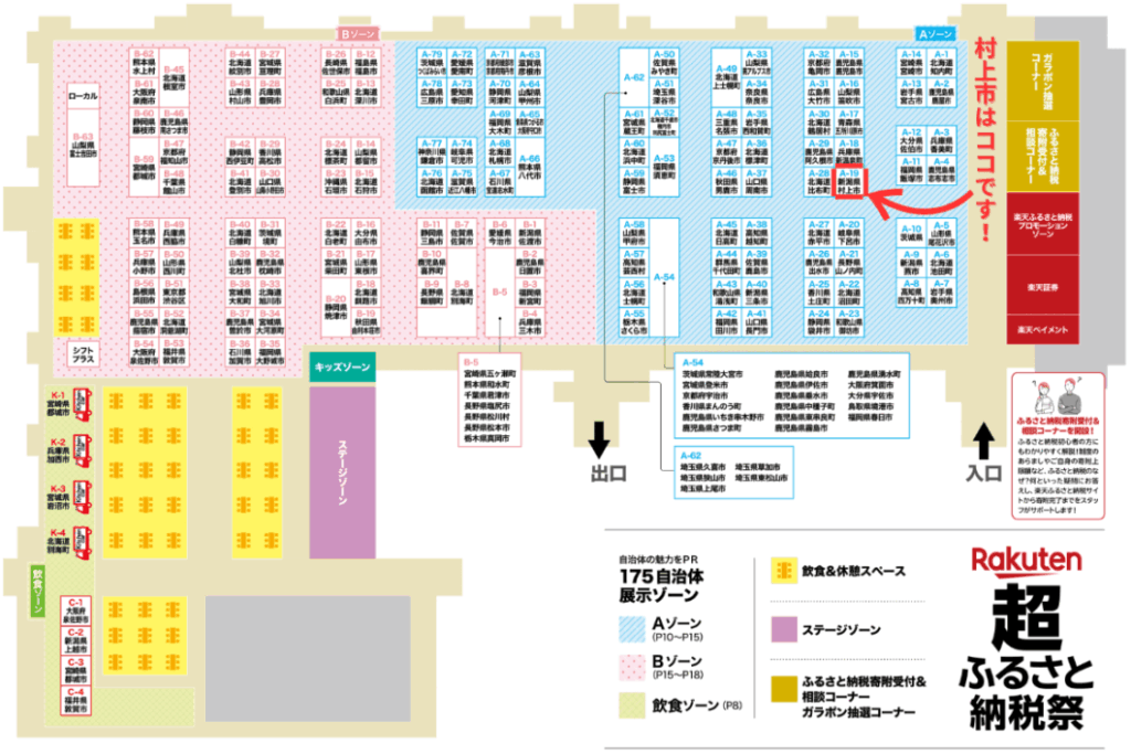 ☟会場マップはこちら【村上市の出展ブースは「A-19」です!】